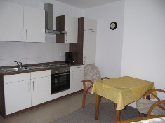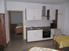 Unsere liebevoll eingerichtete Nichtraucherferienwohnung 4 mit separatem Eingang befindet sich im Erdgeschoß und verfügt über ein Schlafzimmer, eine Wohnküche mit Küchenzeile sowie ein Bad mit Dusche und WC.